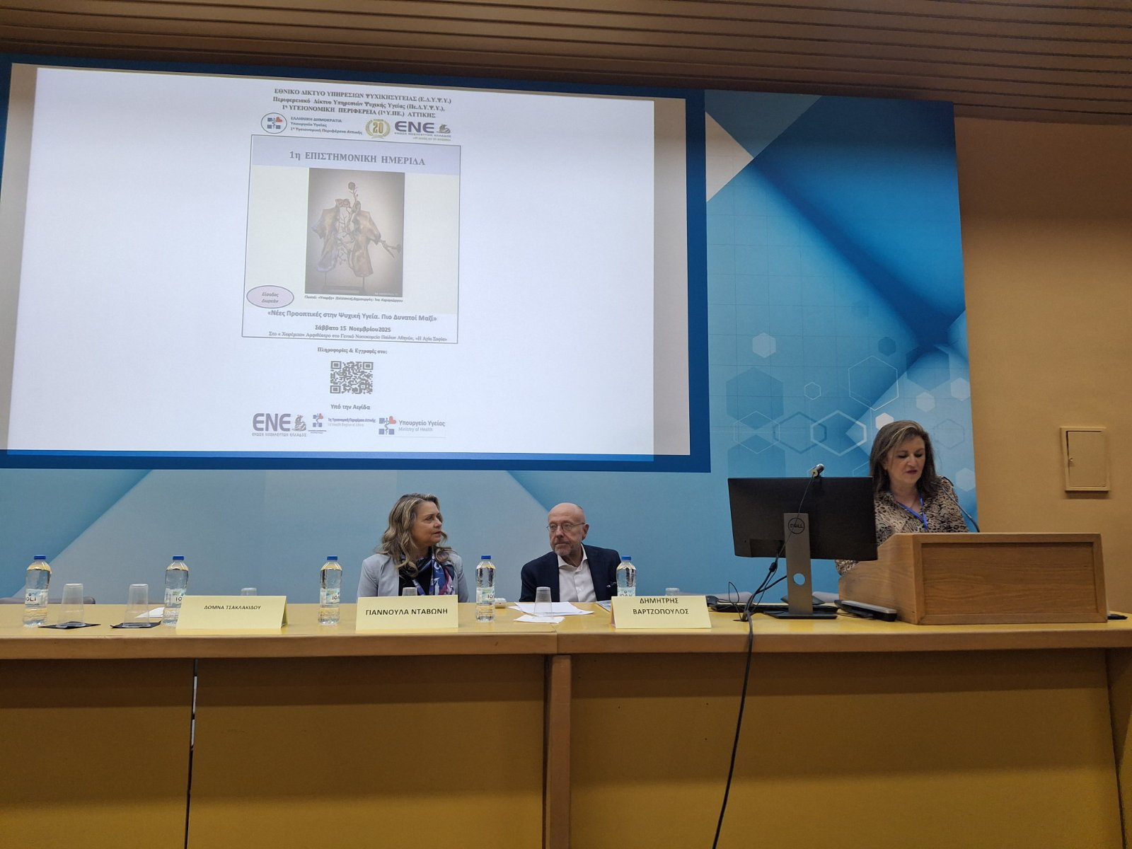 Η 1η Επιστημονική Ημερίδα με τίτλο «Νέες Προοπτικές στην Ψυχική Υγεία. Πιο Δυνατοί Μαζί», που διοργάνωσε η Υποδιοικήτρια του ΠΕ.Δ.Υ.Ψ.Υ. της 1ης Υγειονομικής Περιφέρειας Αττικής, κ. Νταβώνη Γιαννούλα, σε συνεργασία με τη Διευθύντρια της Διεύθυνσης Νοσηλευτικής Ψυχικής Υγείας, κ. Ντρε Βασιλική, ολοκληρώθηκε το Σάββατο 15 Νοεμβρίου 2025 με μεγάλη επιτυχία και ουσιαστικό αντίκτυπο.